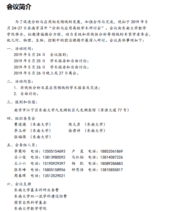 学术会议:分析与应用高级学术研讨会,5月24日-27日,tyc522cc太阳成集团